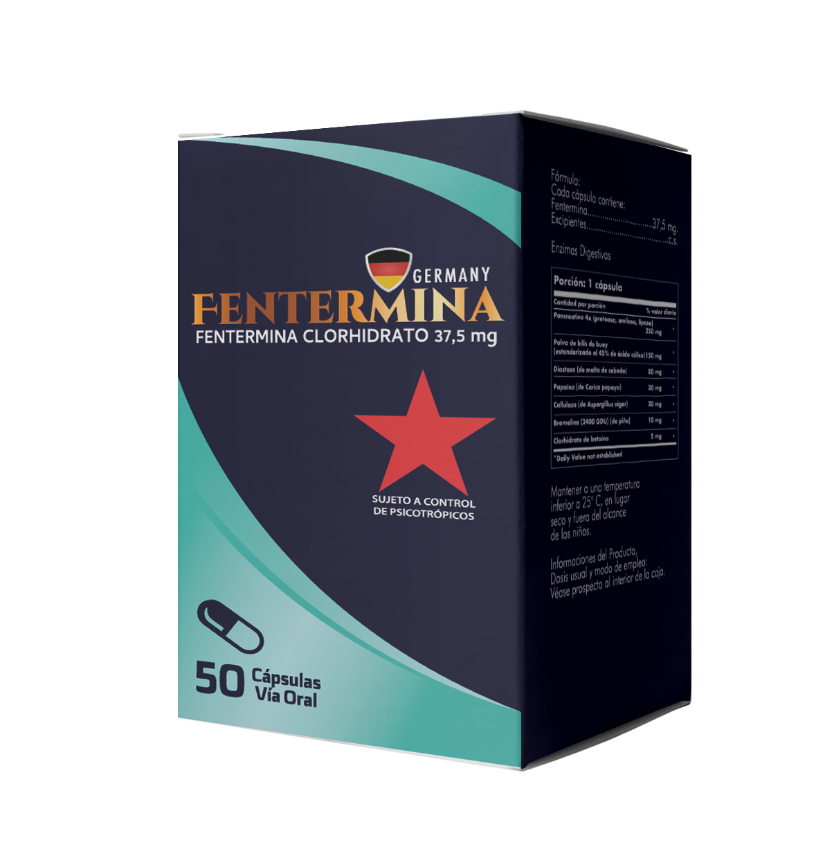 FENTERMINA es un producto desarrollado en Alemania bajo estrictos estándares de calidad y seguridad. Formulada para apoyar a personas con sobrepeso u obesidad, contiene Fentermina Clorhidrato 37,5 mg y un complejo de enzimas digestivas que favorecen la digestión de proteínas, carbohidratos y grasas, contribuyendo a un mejor aprovechamiento de los nutrientes y un control del apetito más efectivo. Cada porción corresponde a 1 cápsula, diseñada para garantizar estabilidad, pureza y dosificación precisa.